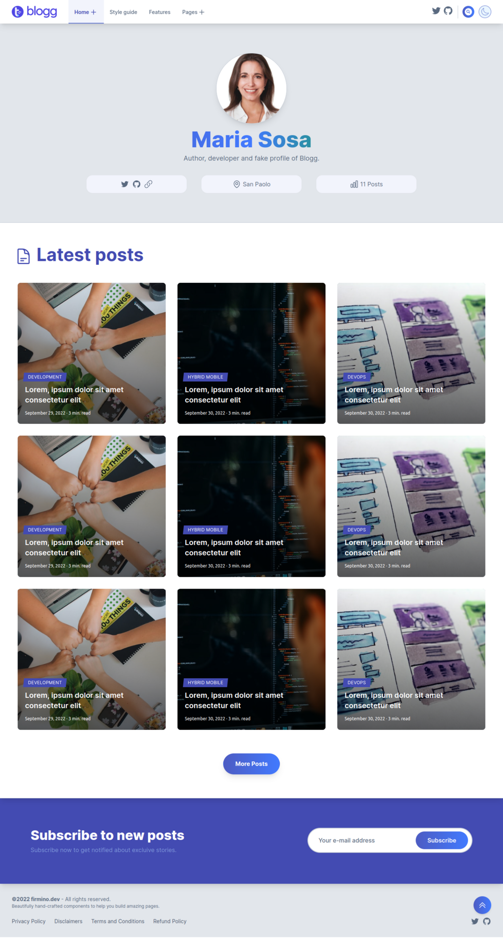Blogg is a Tailwind CSS Blog theme, crafted for blogging in multi-category proposals, created using Tribo Components.
